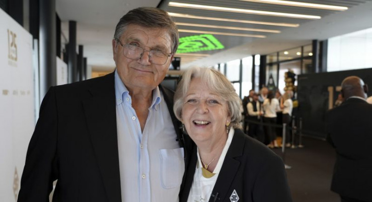 Mönchengladbach: Borussia-Park: Hans Meyer (Ex-Trainer VfL Borussia) + Hannelore Kraft (Präsidiumsmitglied)