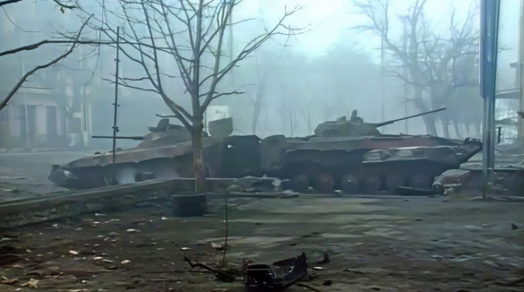 Zerstörte russische Panzer in Grosny im Januar 1995.