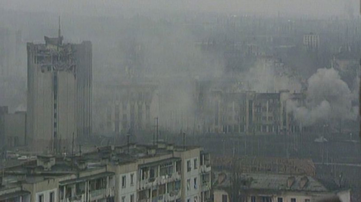 Zerstörter Präsidentenpalast in Grosny im Januar 1995.