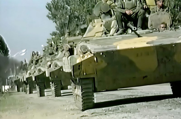 Russische Panzerkolonne Richtung Tschetschenien, September 1999.