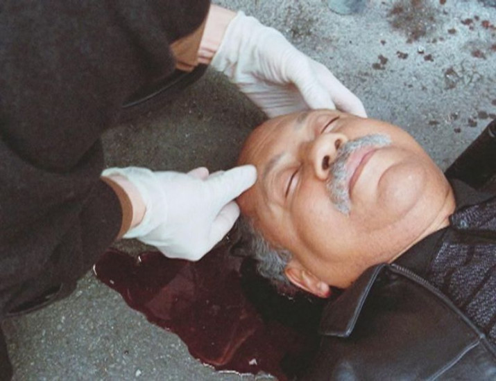 Die Detectives Goren (Vincent D'Onofrio, M.) und Bishop (Samantha Buck) untersuchen den Leichnam von Diego Bracho (Jose Ramon Rosario). +++ Die Verwendung des sendungsbezogenen Materials ist nur mit dem Hinweis und Verlinkung auf RTL+ gestattet. +++