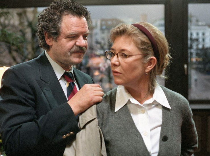 Elvira Kupfer (Jutta Speidel, links) und ihr Kanzleikollege Dr. Stefan Milloschinsky (Gunter Berger) sind einander spinnefeind. Doch nun müssen sie für Julia (Julia Brendler) ein liebendes Ehepaar spielen. Man kommt auf den Geschmack.