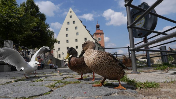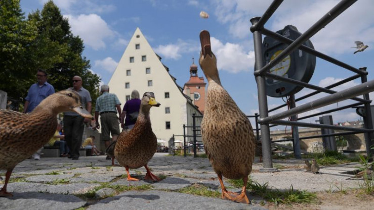 In Regensburg gehen Natur, Kultur und Geschichte respektvoll Hand in Hand. Im Bild: Enten am Donau-Ufer.
