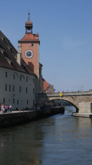 Blick auf die Steinerne Brücke in Regensburg.
