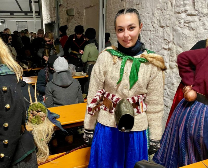 Die Bärbele: mit Hexenmaske, Kuhschellen und Weidenrute vertreiben sie die Wintergeister. Auch Savanna Henssler ist dabei, wenn in Immenstadt die wilden Frauen losziehen.