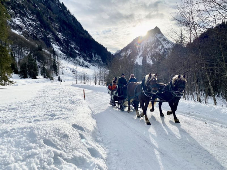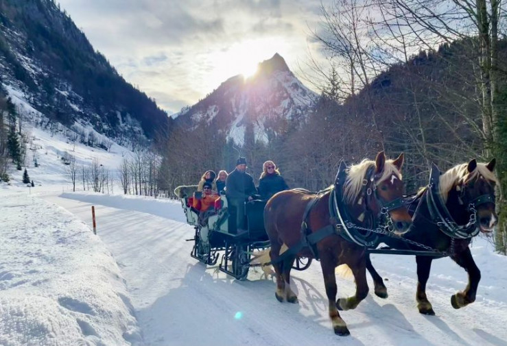 Mit dem Schlitten von Obermaiselstein bis zum Berggasthof Giebelhaus.