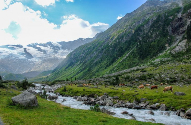 Auf den Gipfeln des Pinzgau - Der Pinzgau und das Steinerne Meer sind nicht nur eine bestechende Alpenkulisse, sondern auch die Heimat einer lebendigen Bergbauernkultur. Maria Alm zum Beispiel bietet eine perfekte Mischung aus alpiner Seehöhe, lieblichen Almen und schroffen Felsen am Horizont. Ähnlich ist es bei anderen Bergdörfern der Region wie Rauris, wo einst die Goldwäscher ihr Glück versuchten, Stuhlfelden, Krimml und dem Bauernhofdorf Embach. Der Film zeigt, wie sich hier die Traditionen erhalten haben und die Menschen aus den Werten der Überlieferung leben. Gleichzeitig beschreibt er die Berggemeinden hier als Orte des Rückzugs vor den Zwängen unseres zivilisierten Lebens. Im Bild: Krimmler Achental.