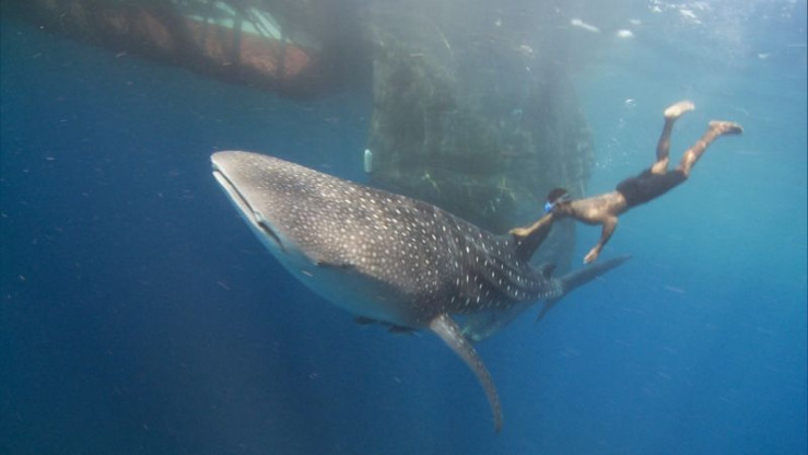 Fischer von im Meer verankerten Plattformen nutzen die ständigen Besucher zum "Zeitvertreib". Auf den gleichmütigen Walhaien lässt sich sogar "reiten".
