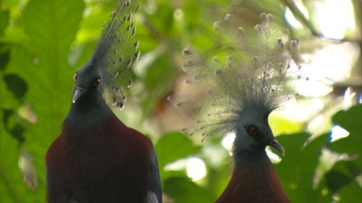 Zwei Fächertauben, auch Victoria Krontauben genannt.