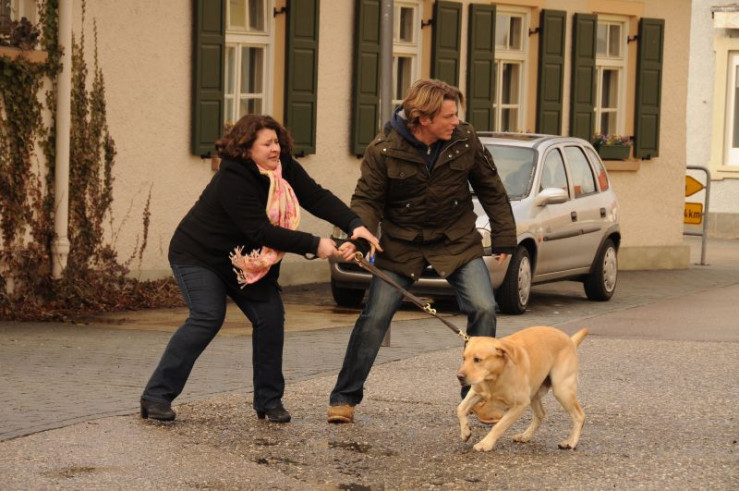 Monika und Sebastian bei ihrem Vorhaben, die Tierfänger zu schnappen. Von links: Monika Vogl (Christine Reimer) und Sebastian Wildner (Herbert Ulrich).