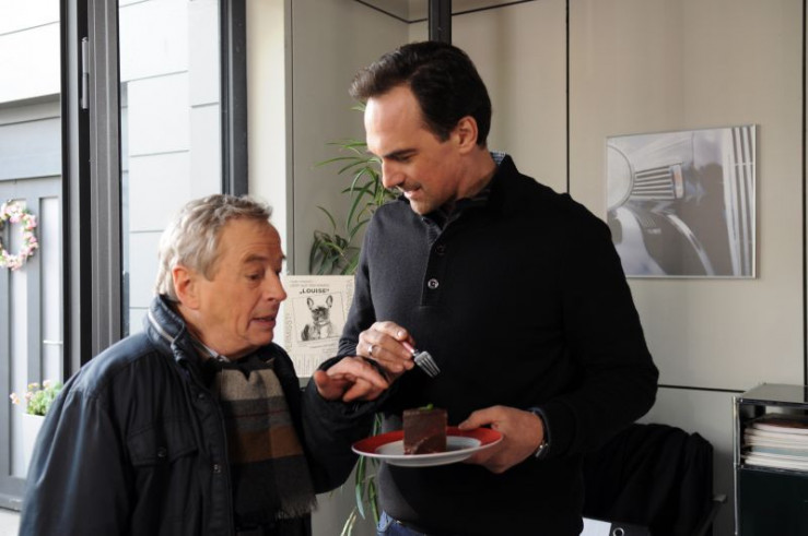 Gerstl erfährt zufällig von Mike den Namen des wahren Bäckers der Torte. Von links: Michael Gerstl (Gerd Lohmeyer) und Mike Preissinger (Harry Blank).