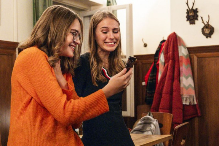 Vivi (Helena Hanslmayer) zeigt Lena (Saskia Golinelli) das Video von Maja, dass sie online gepostet hat.