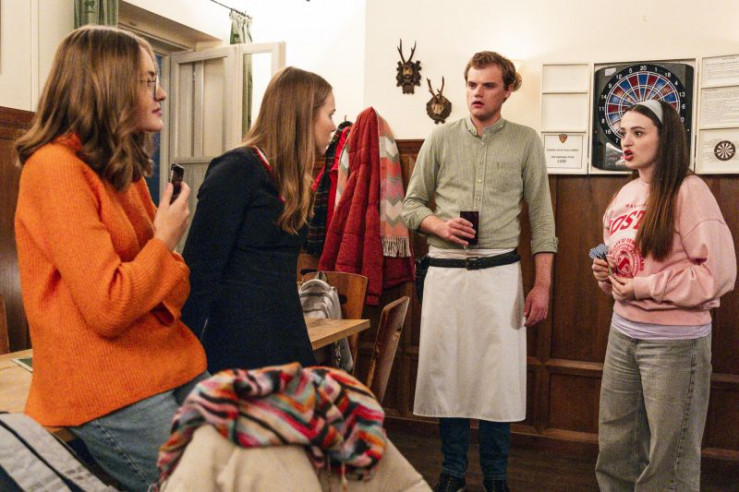Zur Überraschung Majas verabredet sich Lena mit ihr zum Darten. Von links: Maja (Godiva Adela), Lena (Saskia Golinelli), Vivi (Helena Hanslmayer).