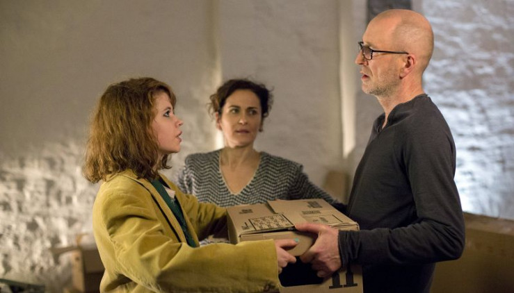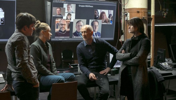 Kriminalkommissar Jan Fabel (Peter Lohmeyer, 2.v.re.) und sein Ermittlerteam Frank (Hannes Wegener, li.), Maria (Lisa Maria Potthoff) und Anna (Ina Paule, re.).
