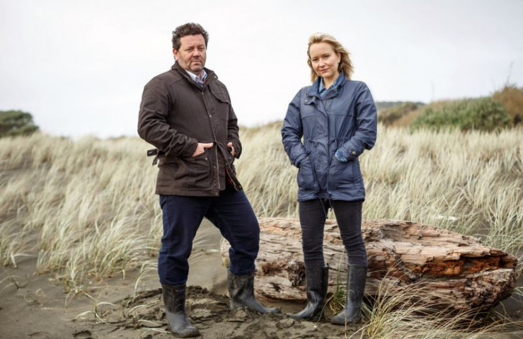 ARD Degeto BROKENWOOD MYSTERIES - LEATHER & LACE, "Brokenwood - Mord in Neuseeland: Tödliche Niederlage", am Sonntag (01.03.20) um 21:45 Uhr im ERSTEN. Detective Mike Shepherd (Neill Rea, re.) und sein Team D.C. Breen (Nic Sampson) und Kristin Sims (Fern Sutherland)