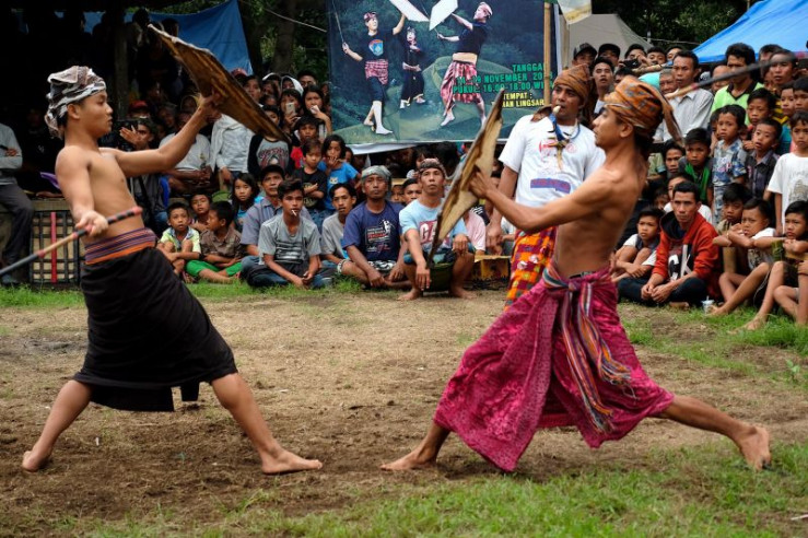 Ritueller Stockkampf in der Tempel/Moschee Anlage von Lingsar