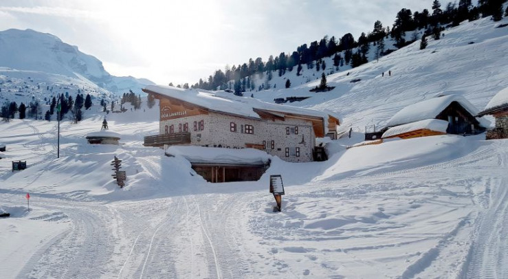 Die Fanesalm mit der Lavarellahütte in den Dolomiten