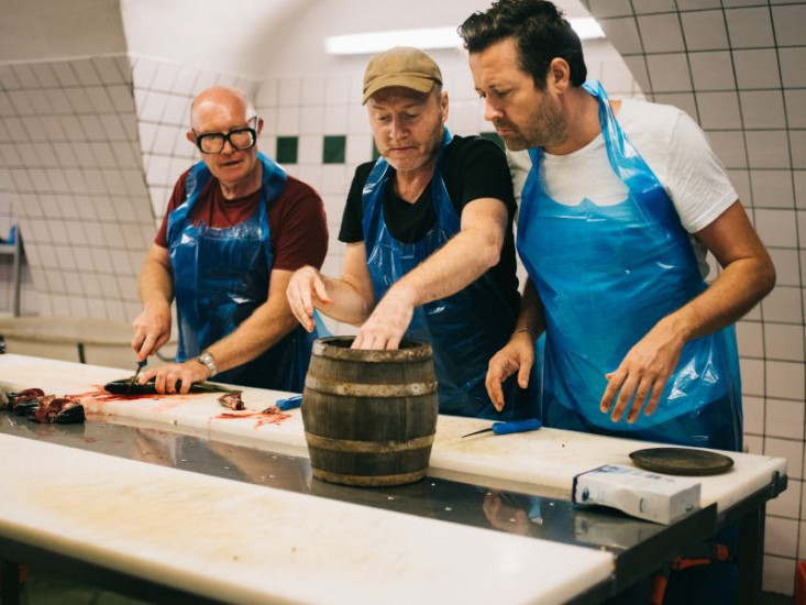 Die drei aus der TV-Serie "Ochs im Glas" bekannten Protagonisten Florian Holzer, Thomas Nowak und Ingo Pertramer, lieben auch Fischkonserven. Deshalb machen sie sich diese selbst.
