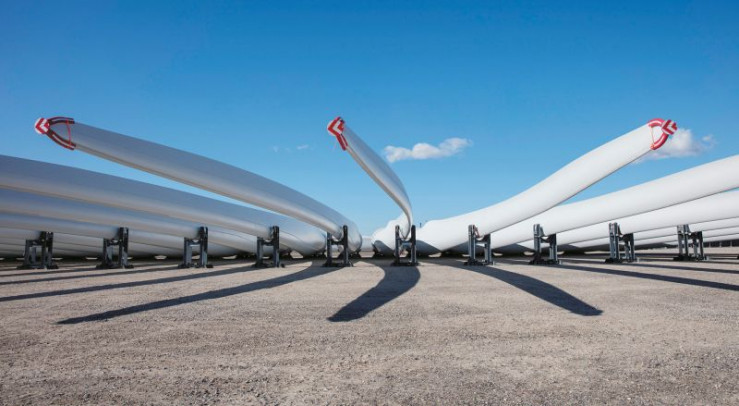 Lagernde Rotorblätter in Aalborg, Dänemark.