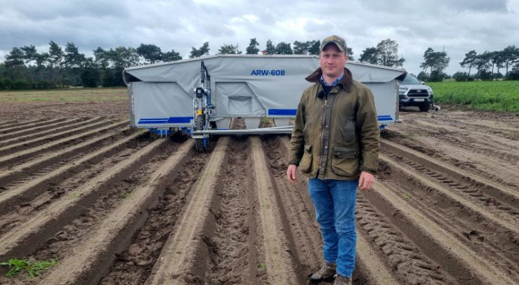 Teuer in der Anschaffung, aber große Arbeitsentlastung: Landwirt Leonard Tille-Reineke hat sich einen sechs Meter breiten Unkraut-Roboter angeschafft.