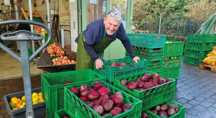 Johann Runge mischt frische Rote Bete in seinen Saft - eine eigene Erfindung.