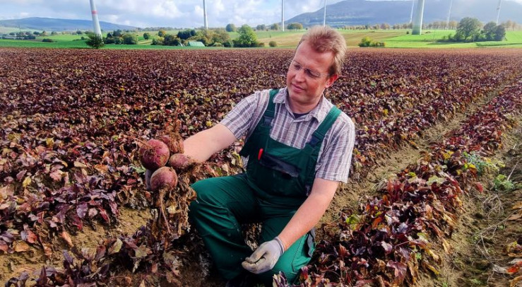 Kleine rote Knolle mit vielen Vitaminen. Landwirt Stephan Simmenroth ist mit der Ernte der Rote Bete nicht zufrieden. Ihm fehlen 12 Tonnen je Hektar.