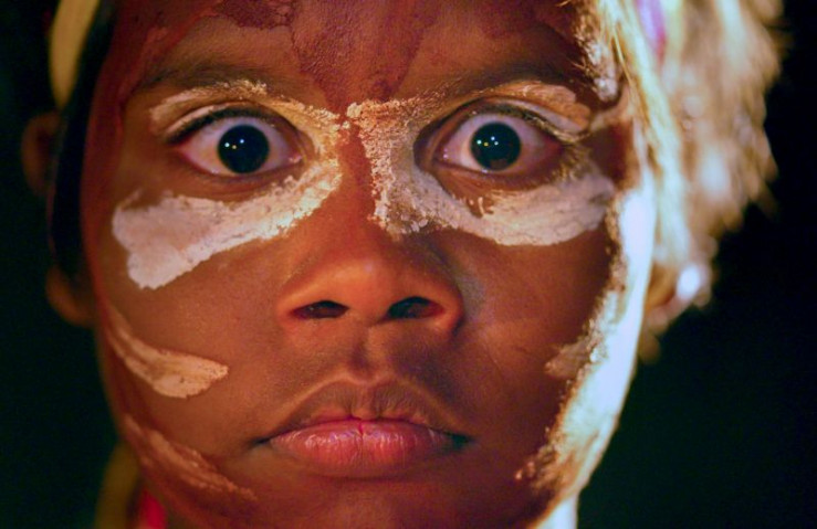 Junge mit Kalkbemalung für Junba, eine traditionelle Zeremonie der Aborigines mit Tanz, Musik und Gesang in der Kimberley-Region.