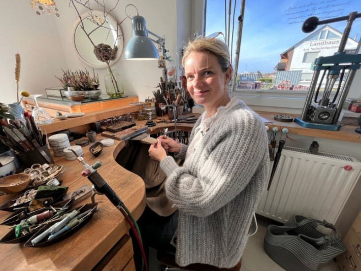 Die ruhigen Wochen nutzen Jannes und seine Partnerin Martina Runge, um ihr gemeinsames Projekt "Atelier für Brot & Gold" voranzutreiben. Martina ist Goldschmiedin und nutzt die ruhigen Wintermonate, um neue Kollektionsteile für den Verkauf im Sommer herstellen zu können.