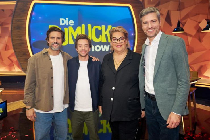 V.l.: Tom Beck, Louis Steffens, Ilka Bessin, Ingo Zamperoni