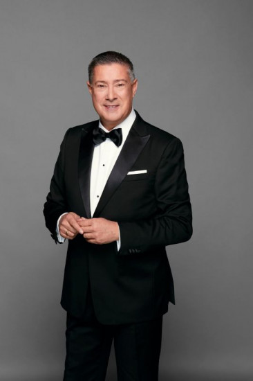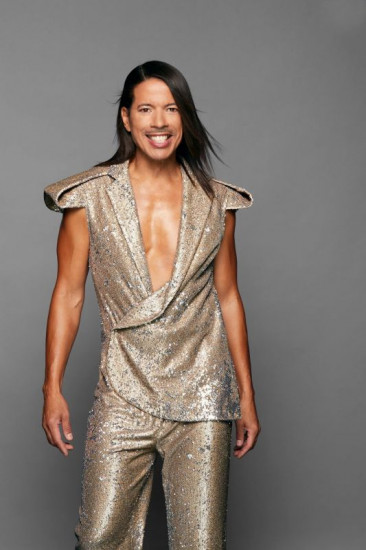 Die Jurymitglieder (v.l.) Jorge González, Motsi Mabuse und Joachim Llambi demonstrieren zusammen mit den Moderatoren Victoria Swarovski und Daniel Hartwich (hinten links) den "Happy Zuschauerdance".