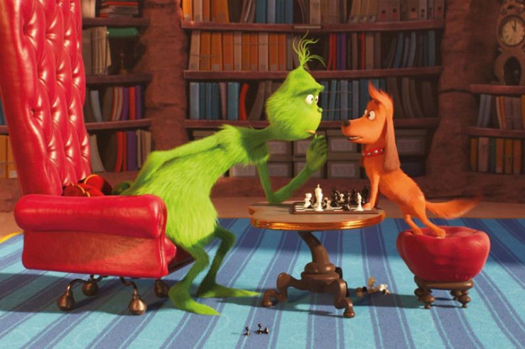 Der Grinch spielt eine Partie Schach mit seinem treuen Hund Max.