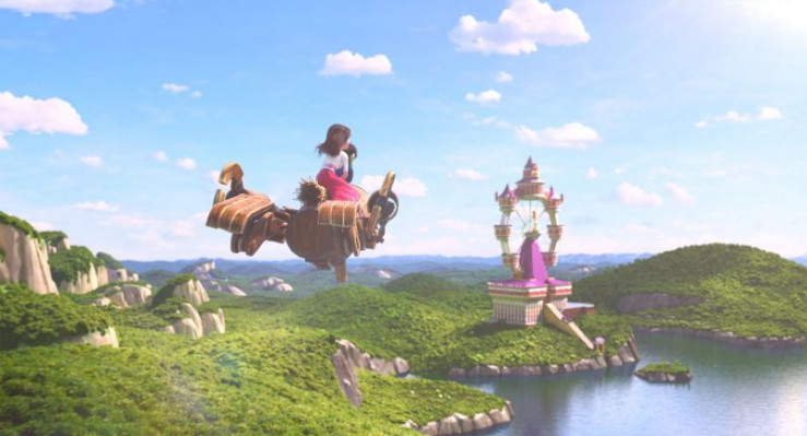 Schneewittchen (li.) und Merlin (re.) fliegen gemeinsam in die Stadt, um die Suchflyer zu verteilen, von denen Schneewittchen sich erhofft, dass sie sie zu ihrem Vater führen.
