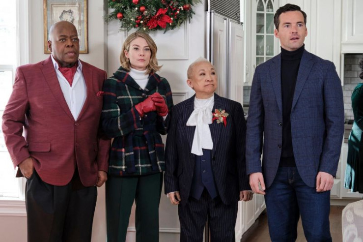 Roy, Geist der zukünftigen Weihnacht (Reginald VelJohnson, li.), Arlene, Geist der vergangenen Weihnacht (Lori Tan Chinn, 2. v. re.) und Katherine, Geist der gegenwärtigen Weihnacht (Kim Matula) müssen sich um Peter (Ian Harding, re.) kümmern.