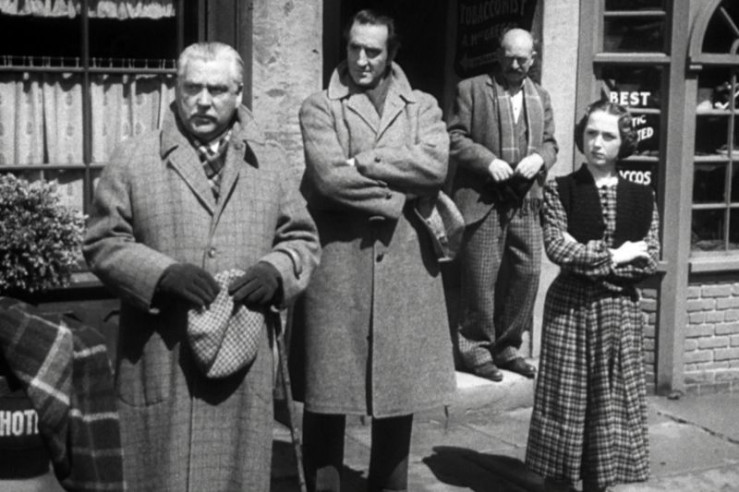 Von links: Doctor Watson (Nigel Bruce), Sherlock Holmes (Basil Rathbone), Alastair (Aubrey Mather) und Alison MacGregor (Florette Hillier)