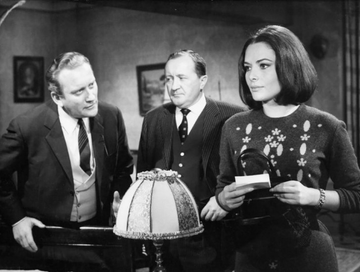 Sir William (Dieter Eppler, l.), Sir Richard (Siegfried Lowitz), Gwendolin Gilmore (Karin Dor)