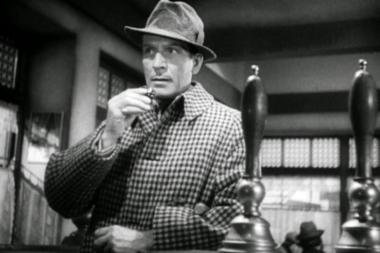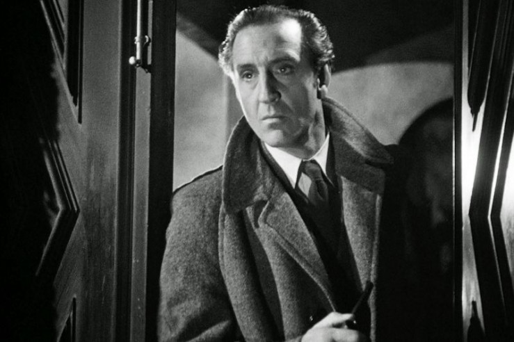 Von links: Lestrade (Dennis Hoey), Sherlock Holmes (Basil Rathbone) und Doctor Watson (Nigel Bruce)