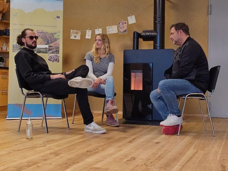 V.l.: Annika mit ihrer Mutter Maja und ihrer Schwester Hanna. Martin Rütter hört sich Erfahrungen von Betroffenen von Autismus an.