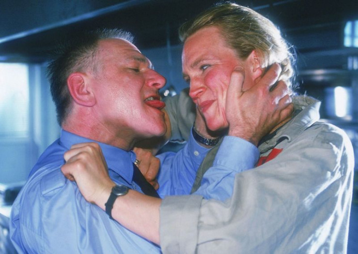 Walter (Katy Karrenbauer, oben) wird von Andy und Nina dabei überrascht, wie sie mit Gewalt Tabletten von Dr. Strauss (Rainer Goernemann) bekommen will... +++ Die Verwendung des sendungsbezogenen Materials ist nur mit dem Hinweis und Verlinkung auf RTL+ gestattet. +++