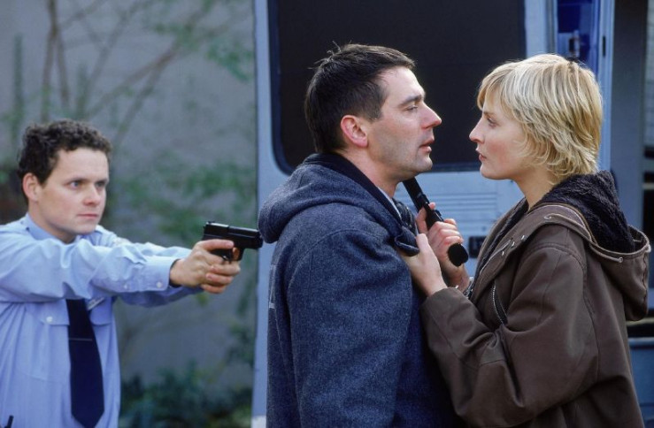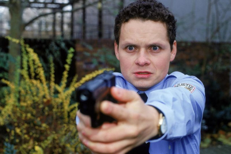 Der mit einer Waffe völlig überforderte Andy (Stefan Puntigam) fordert Mareike auf, die Pistole niederzulegen. +++ Die Verwendung des sendungsbezogenen Materials ist nur mit dem Hinweis und Verlinkung auf RTL+ gestattet. +++