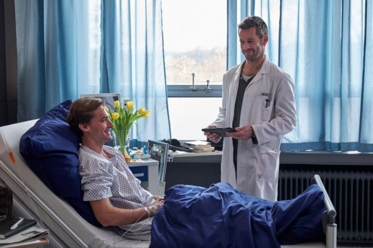 Alex Rode (Jan Hartmann, r.) schaut bei seinem Patienten Pascal Vogt (Vinzenz Wagner) vorbei, der ihn vor ein medizinisches Rätsel stellt.