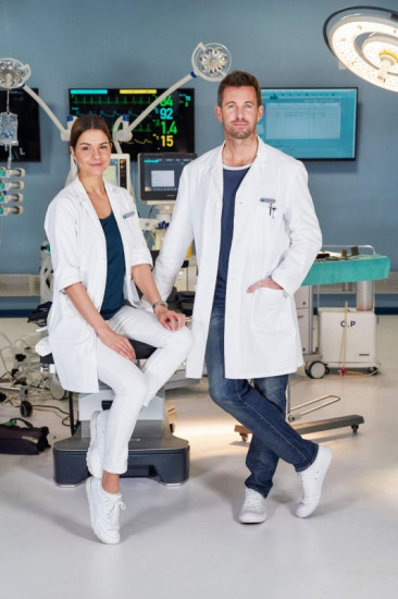 V.l.: Elias Wadowski (Oliver Bröcker), Dr. Caro Diehl (Jytte-Merle Böhrnsen), Alex Rode (Jan Hartmann), Laura Seifert (Susan Hoecke), Richard (Marc Oliver Schulze), Schwester Annika (Tina Amon Amonsen)