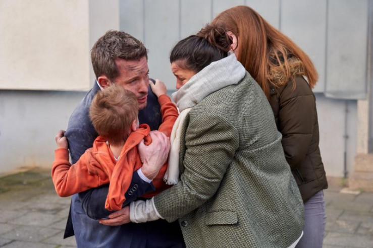 Alex Rode (Jan Hartmann) rennt in ein brennendes Haus und kann einen kleinen Jungen retten.