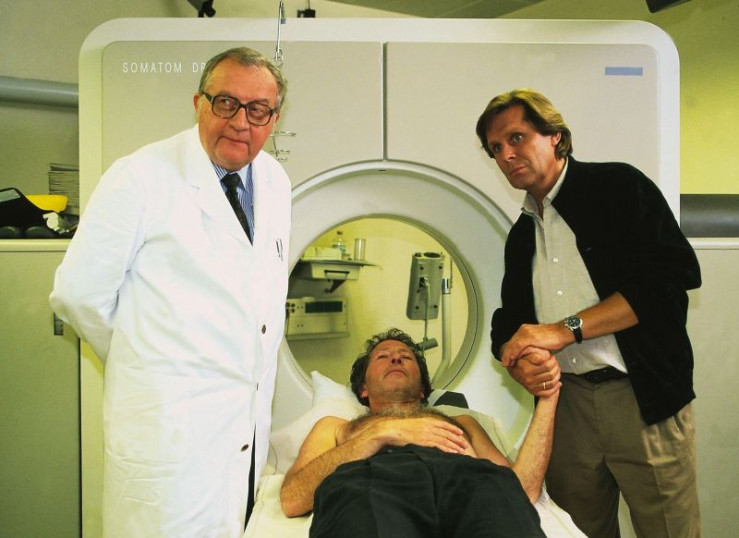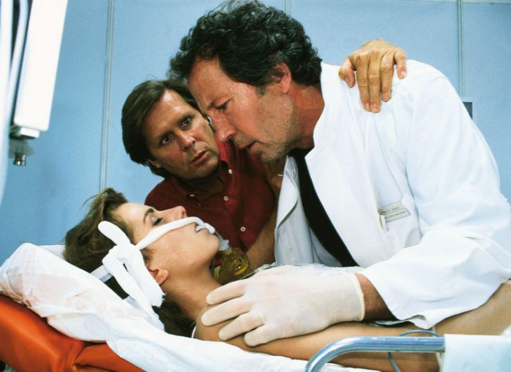 Dr. Stefan Frank (Sigmar Solbach, r.), Dr. Thomas Reinhardt (Christopher Barker) und Oberschwester Charlotte (Barbara Schroth) versorgen den kleinen Sven (Christoph Dirscherl). +++ Die Verwendung des sendungsbezogenen Materials ist nur mit dem Hinweis und Verlinkung auf RTL+ gestattet. +++