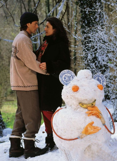 Katrinchen (Stefanie Werner) baut gemeinsam mit Jakob (Stefan Ullrich) einen Schneemann.