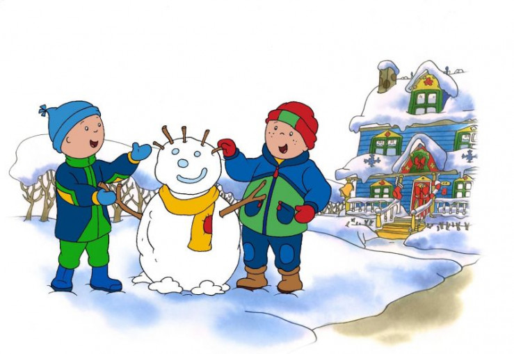 Caillou (li.) und sein freund bauen einen Schneemann. Beide freuen sich schon auf Weihnachten.