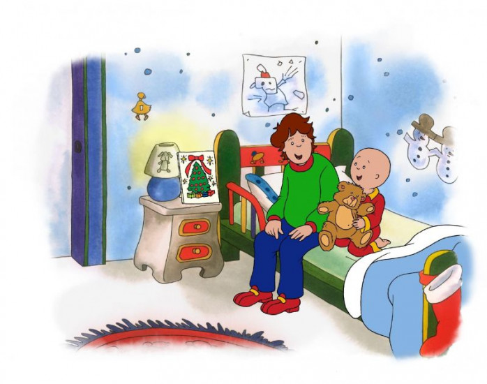 Caillou (re.) und sein Papi freuen sich auf das bevorstehende Weihnachtsfest.