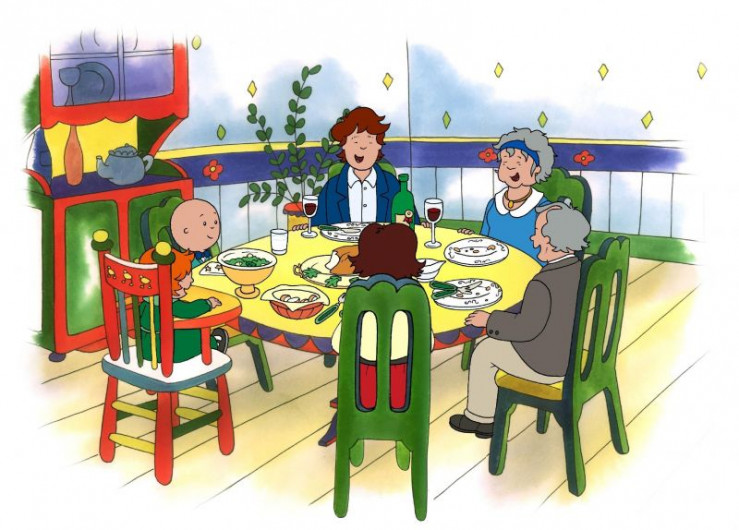 Bei Caillou (li.) und seiner Familie gibt es zu Weihnachten ein richtiges Festmahl.