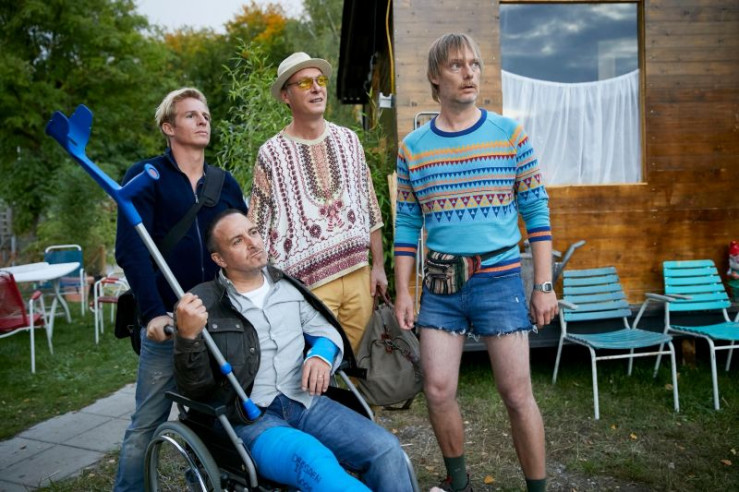 Ronny (Martin Brambach, 2.v.r.) soll auf dem Campingplatz von Timo (Michael Specht, r.) unterkommen. Als Timo den Gästen den für Ronny vorgesehenen Wohnwagen zeigt, sind Semir (Erdogan Atalay) und Paul (Daniel Roesner, l.) nicht gerade begeistert. +++ Die Verwendung des sendungsbezogenen Materials ist nur mit dem Hinweis und Verlinkung auf RTL+ gestattet. +++