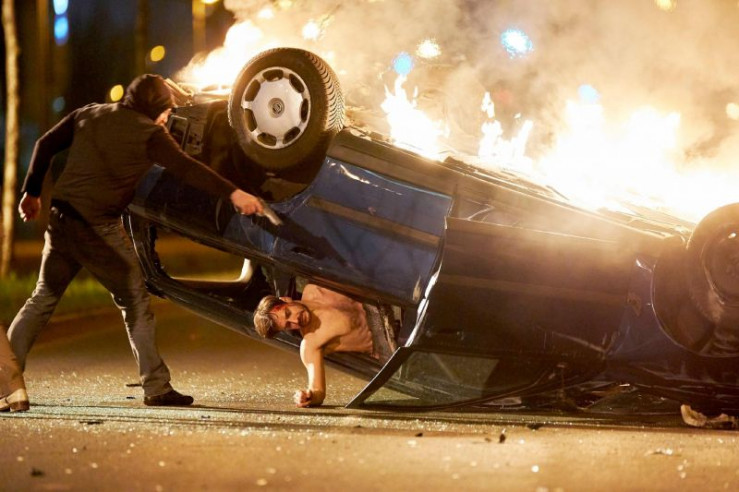 Die Helden verfolgen die Entführer von Pauls Kumpel Marc (Valentin Schreyer, r.). Das Fluchtfahrzeug verunfallt und Marc wird von seinen Entführern erschossen.