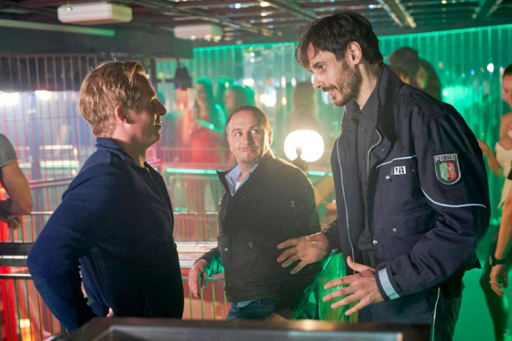 Semir (Erdogan Atalay, M.) und Paul (Daniel Roesner, l.) treffen in einem Nachtclub Pauls Ex-Kollegen Marc (Valentin Schreyer), der mit Paul etwas besprechen will.